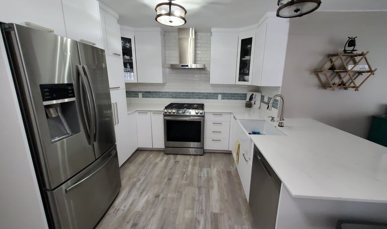 Trop de rénovations se terminent avec des corrections à faire, des détails oubliés, des "on repassera". Pas ici. Joints droits, coupes précises, finitions impeccables. Le souci du détail, c'est ce qui nous différencie.